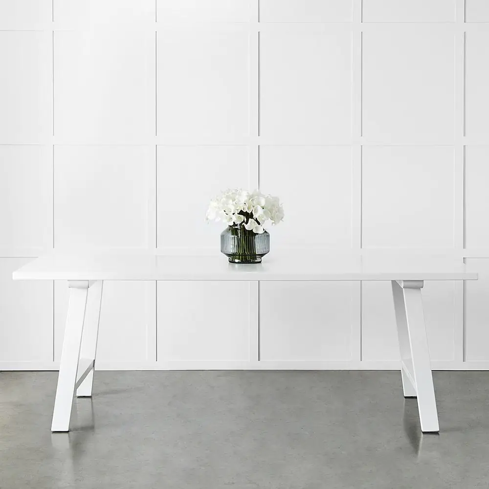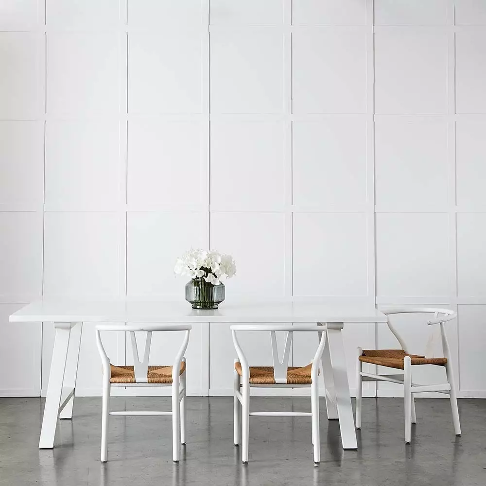 The understated Arizona dining table has a Scandinavian feel with clean lines and simple trestle style legs. Carefully crafted from birch and then painted. The crisp white of the table lends itself to pairing with any of our dining chairs white, black or natural for a look that suits your style.