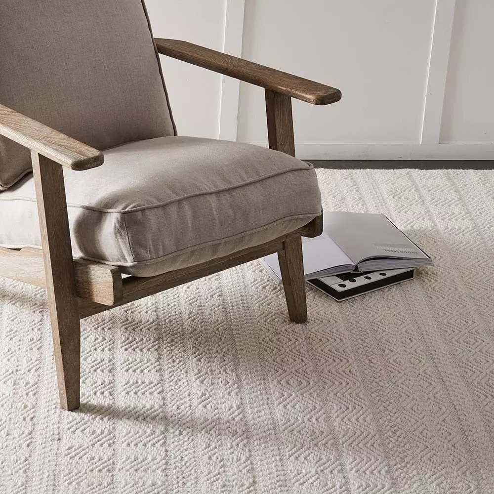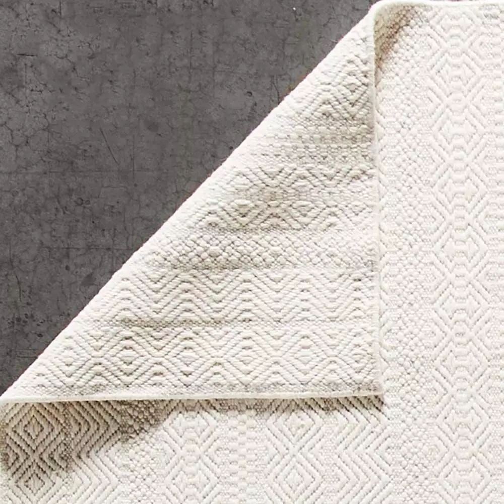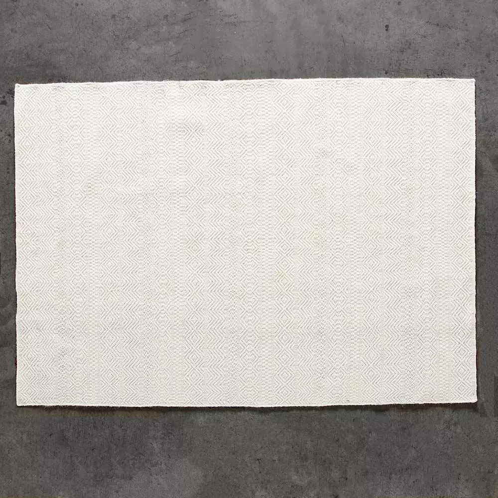 A timeless flatweave rug handwoven from 100% wool. The neutral ivory colour is woven in a classic design giving an attractive texture to the rug.