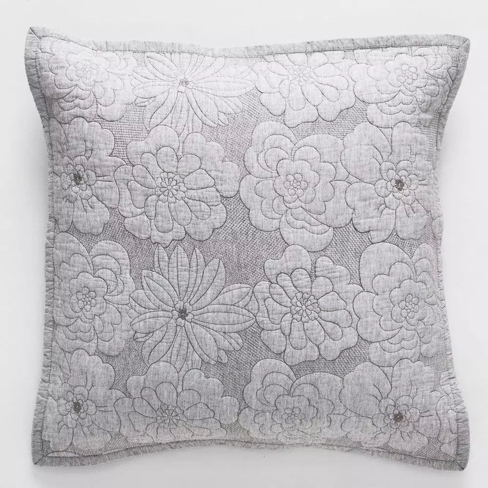 Ava is a beautiful, textural sham quilted in the traditional French boutis manner. The soft grey cotton is enhanced by the stitching and makes a calming backdrop for your bedroom while combining well with almost any colour. The reverse side is a plain grey cotton, with two tie closures.