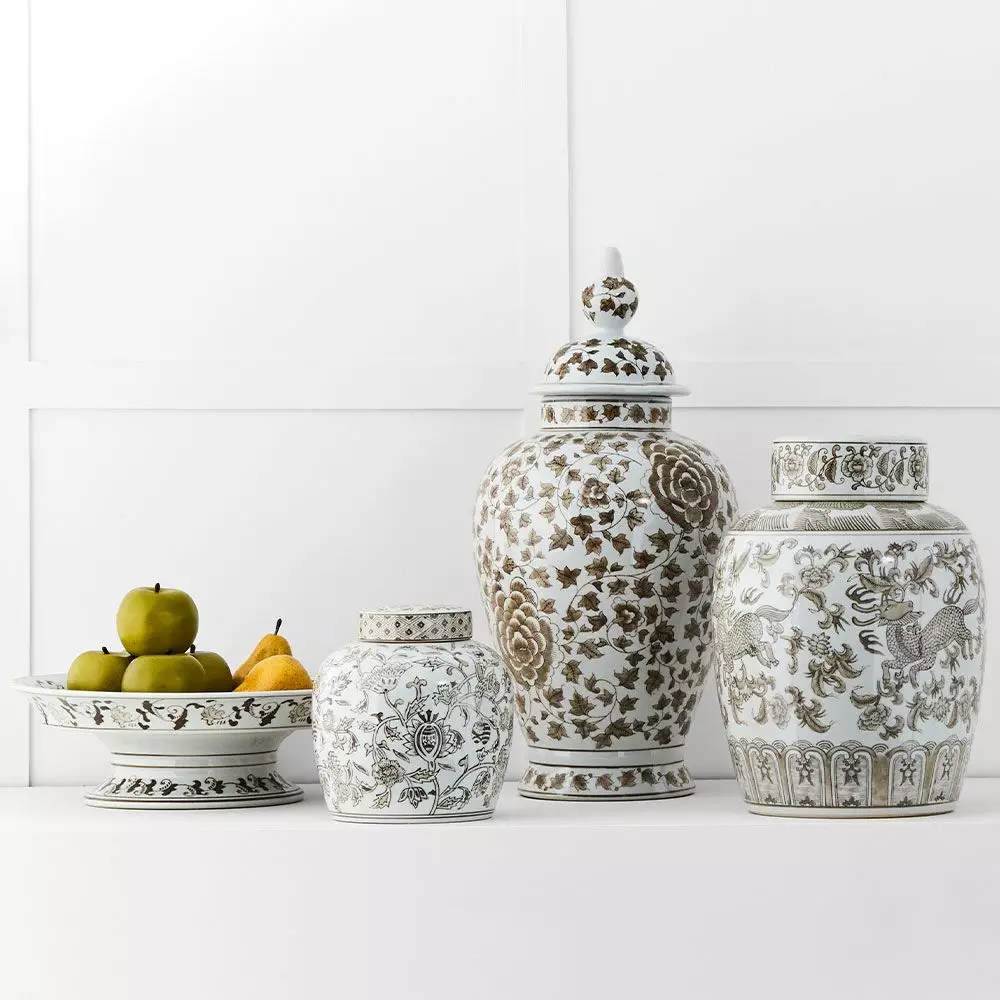 Ginger jars are steeped in centuries of Chinese culture and history, they come in various styles and sizes and many different colours. These gorgeous chestnut and white jars will look wonderful as a pair or a group.
