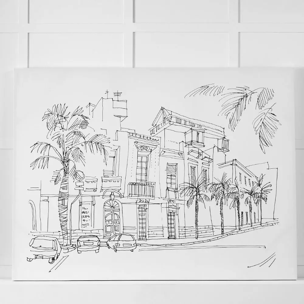 You can travel from the comfort of your armchair with this fabulous, oversized canvas of a beautiful sketch of buildings in Brindisi.