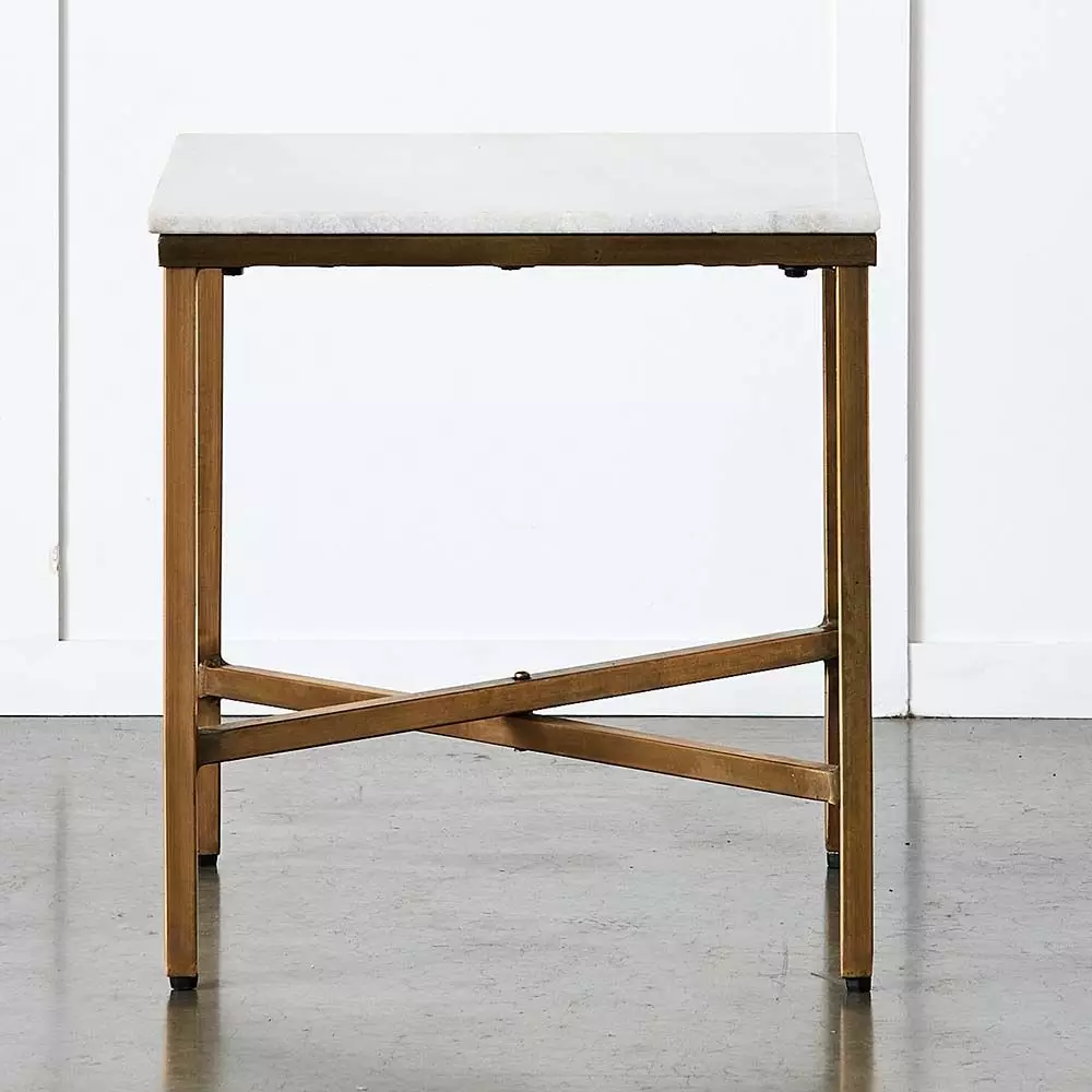 Bristol is an elegant marble topped side table with brass plated iron legs. The slender legs and open feel make it ideal for smaller spaces as it appears to float in a room. The classic colour combination of white and brass is versatile and will look good with almost any style of furniture.