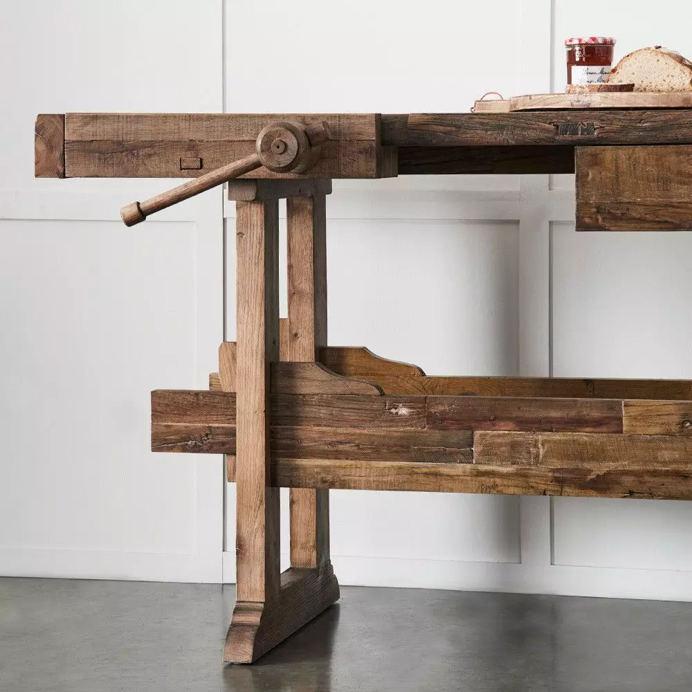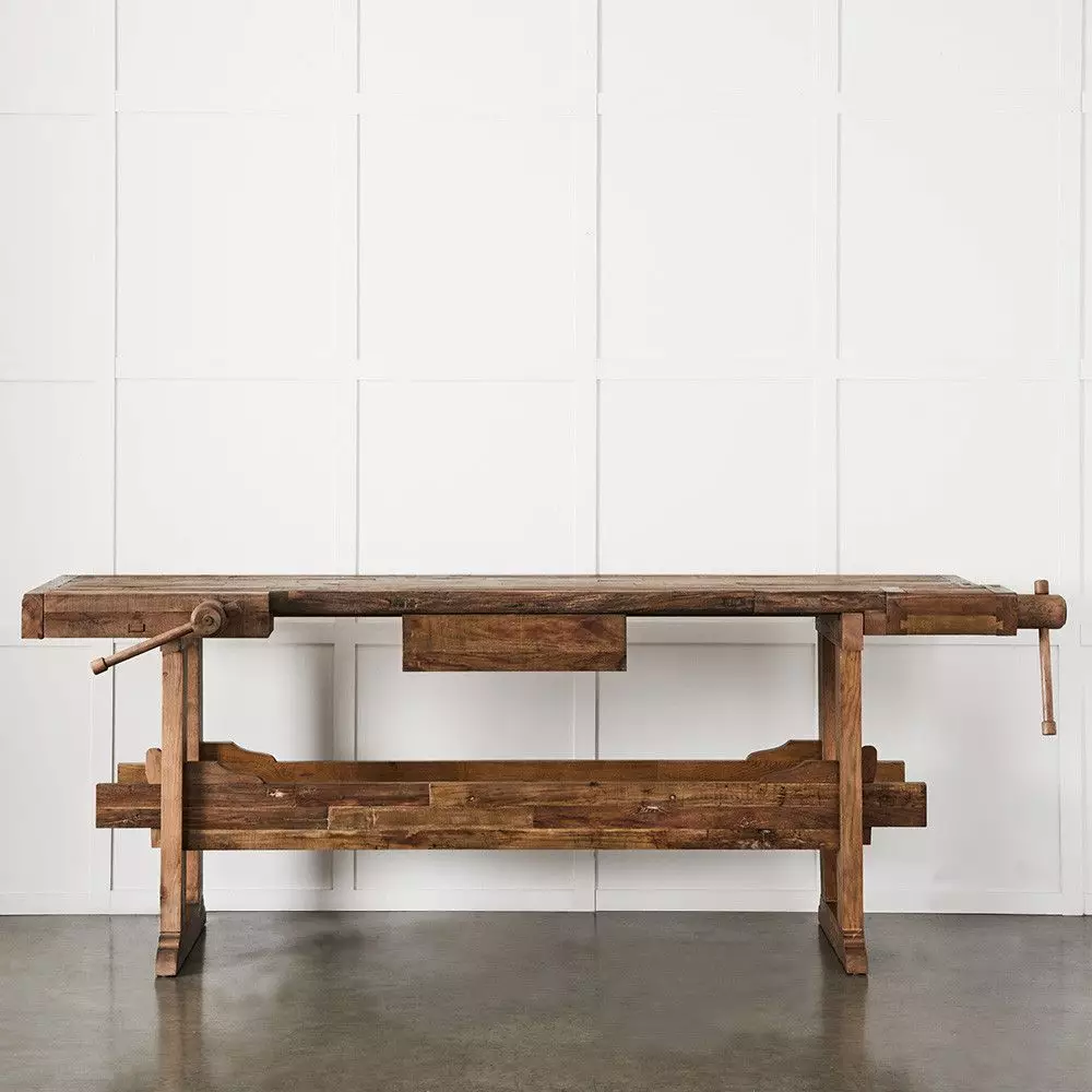 Carpenters have been using woodworking benches for centuries, the earliest dating back to ancient Egyptian times. This fine work bench crafted from reclaimed elm will sit perfectly in your entrance or living room. Perfect as a console and for displaying ornaments, photos or a large vase of flowers.