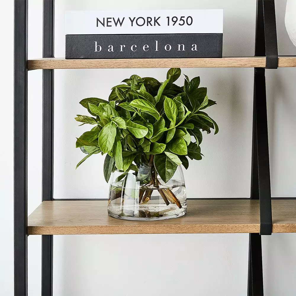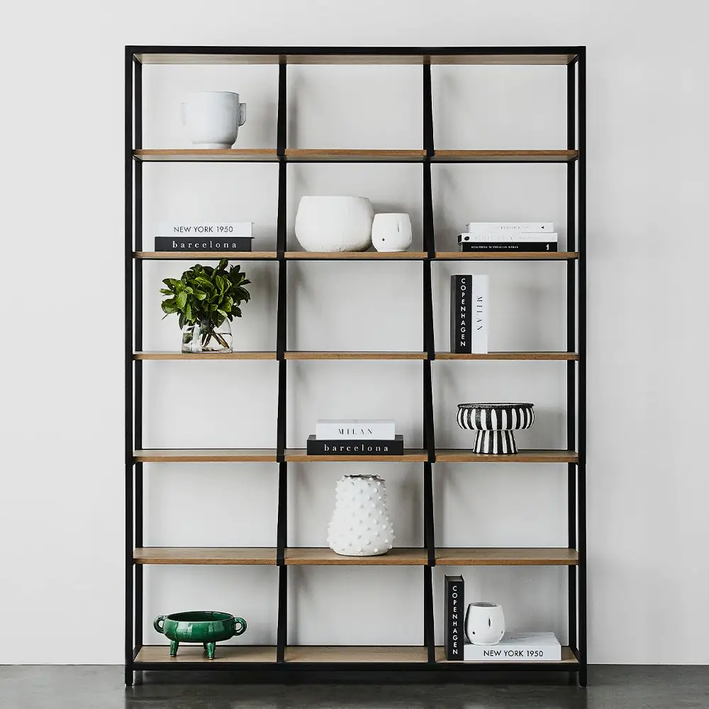 The simplicity of the shelving unit with the combination of oak and metal enables it to fit into any décor. The clever diagonal supports add some extra interest and can go to the back or front. Use it for all your “I’m going to read that” books, cook books, collections from travels or photos to make your own statement. We recommend fastening to the wall for extra safety.