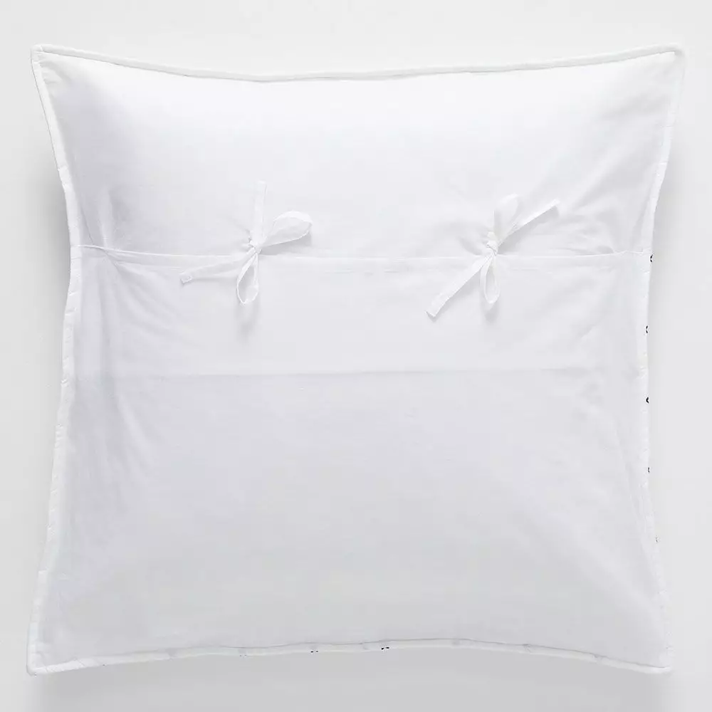 A simple white cotton sham with an ink blue cross stitch detail adds some subtle texture and colour to your bed. Pick up the accent colour with some accessories – sheets, cushions, pillowcases or a throw. A plain white back with ties completes the sham beautifully.