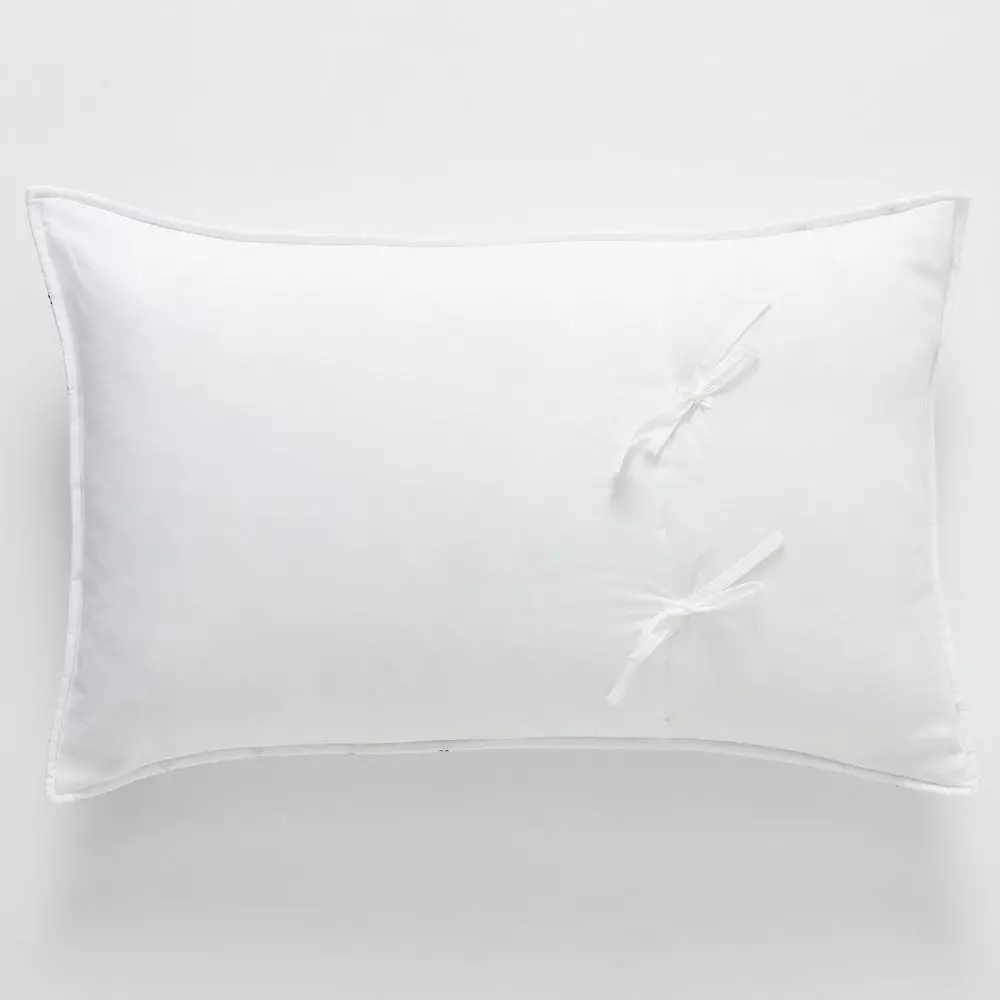 A simple white cotton sham with an ink blue coloured cross stitch detail adds some subtle texture and colour to your bed. Pick up the accent colour with some accessories – sheets, cushions, pillowcases or a throw. A plain white back with ties completes the sham beautifully.