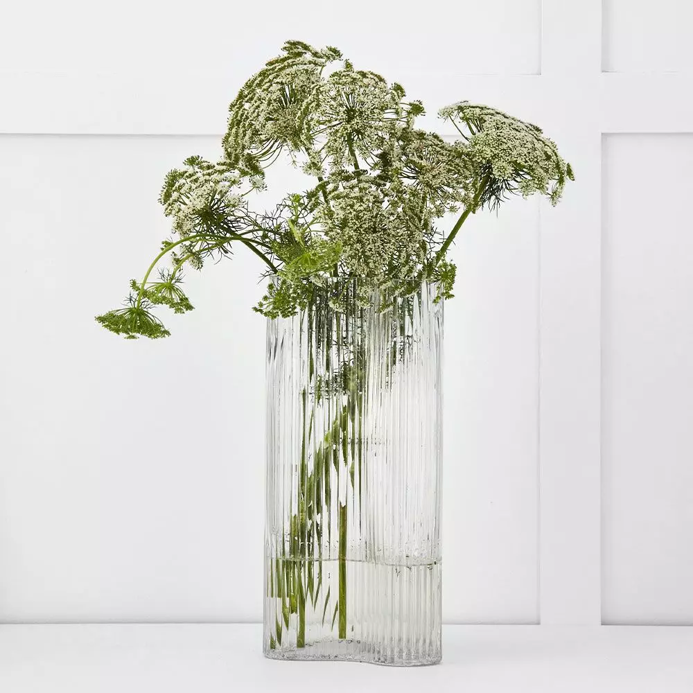 An elegant ribbed vase with an irregular shape will make even the simplest of blooms look wonderful.
