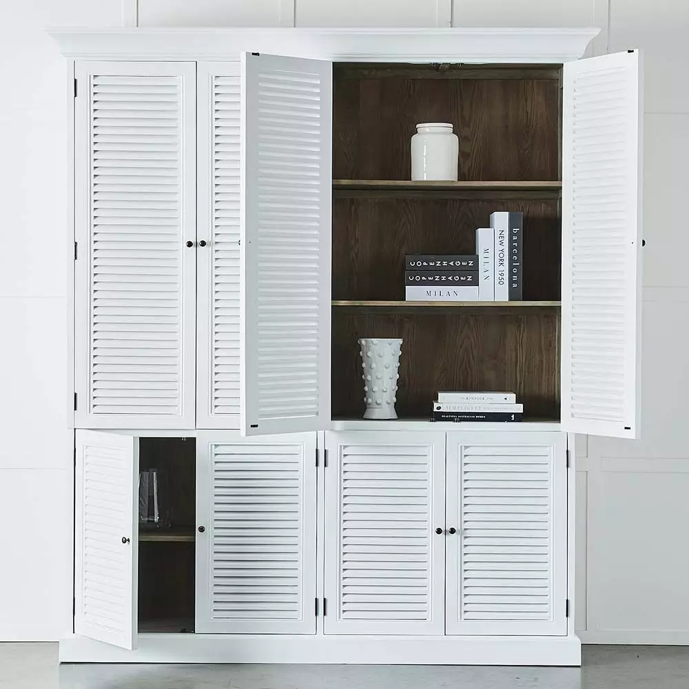 The Copenhagen cabinet is a gorgeous addition to our cabinet range. With 2 removable shelves at the top and one on the bottom there is plenty of storage but beautifully hidden behind the 8 louvered doors. This cabinet is the perfect storage solution for any room, hiding any untidiness while keeping the look sleek. Constructed from poplar and painted a crisp white this louvered cabinet is sure to become a favourite.