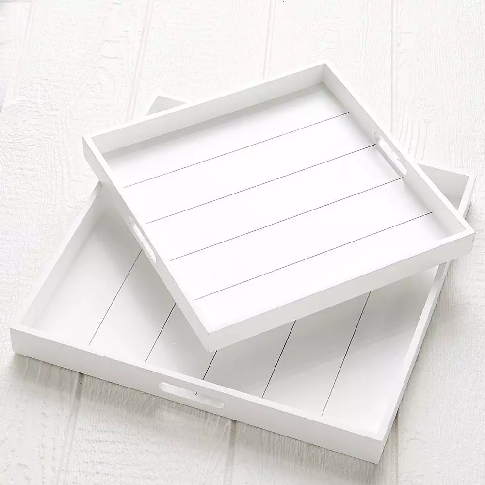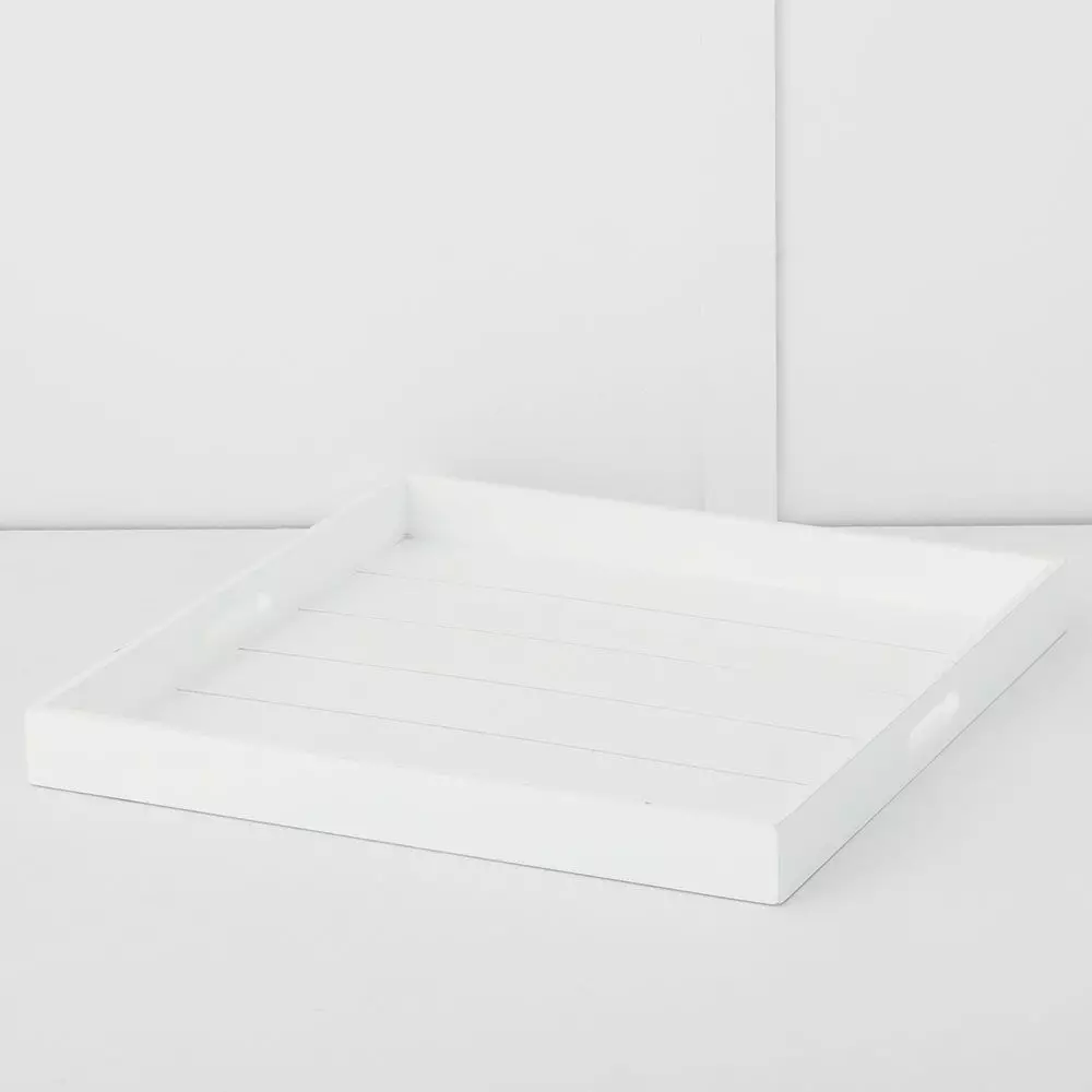 A stylish tray suited for use on top of an ottoman as a coffee table. Scatter with magazines or candles and collectibles to add some appeal.