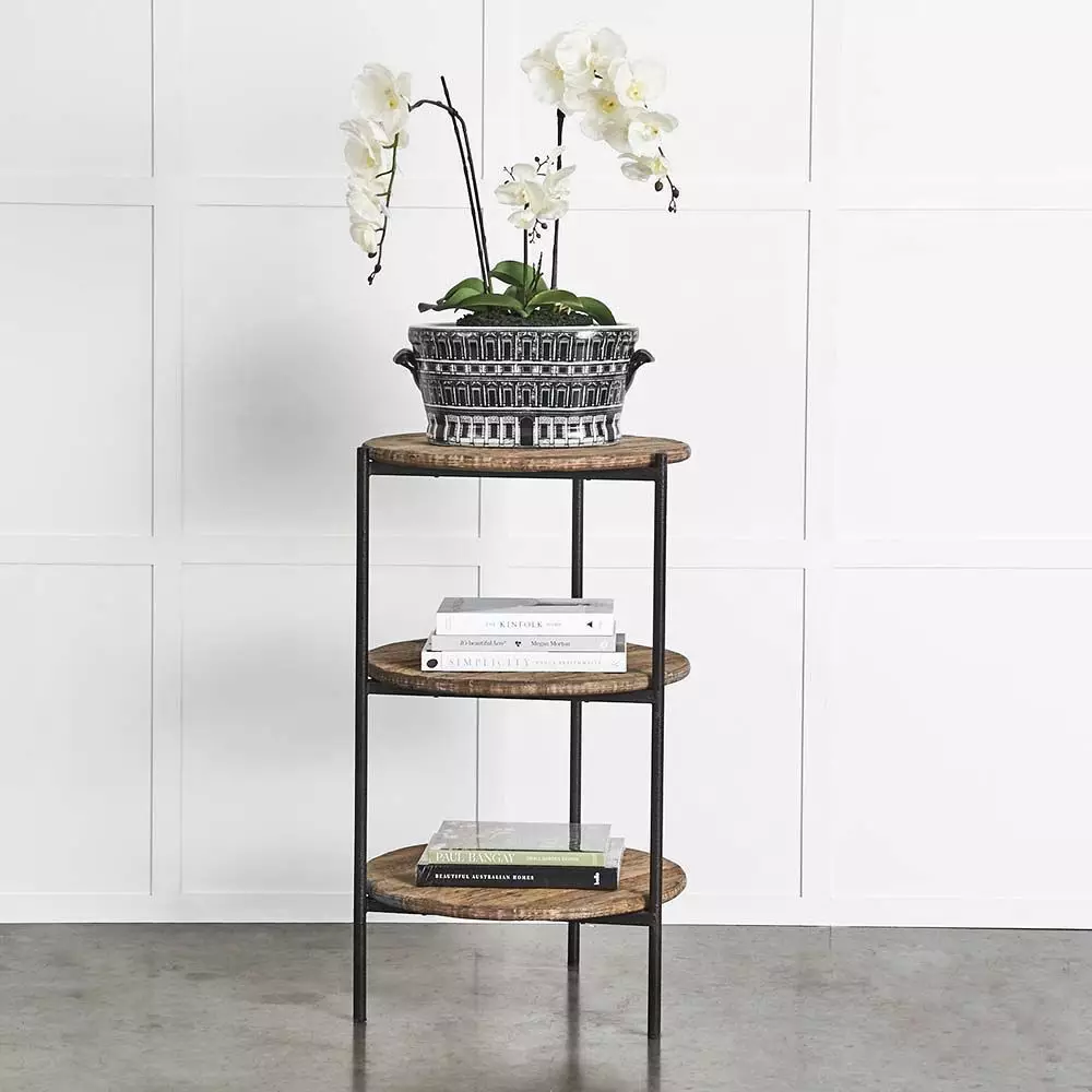 The Fergus side table is a statement piece made from reclaimed oak with a dark steel frame. The timber shows all the marks of a previous life which adds to its beauty.