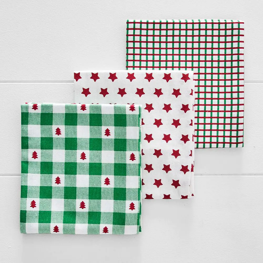 Our Christmas tea towels add a festive touch to the kitchen, they come in a handy pack of three in different patterns and colourways. Stock up with a couple of packs and don’t forget – they make a lovely gift too! Made from recycled cotton.