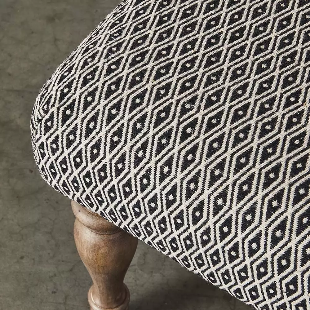 The Khadi ottoman is a versatile piece of furniture – it can be used as an ottoman or a coffee table. The legs are beautifully crafted from sustainable mango wood and left with a raw, natural finish. The top is upholstered in a luxurious velvet with brass studding and filled with quality foam and poly fibre. It will easily find a place in any room.