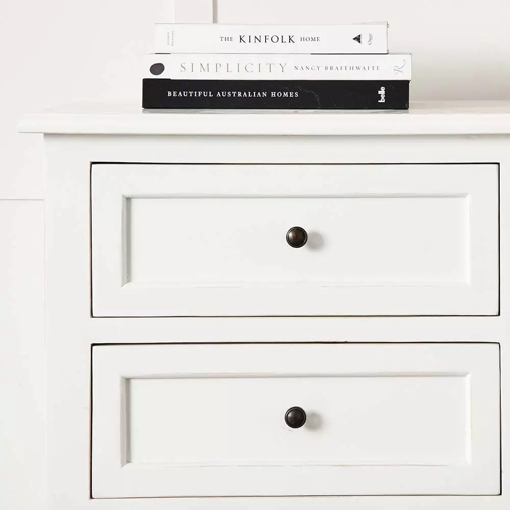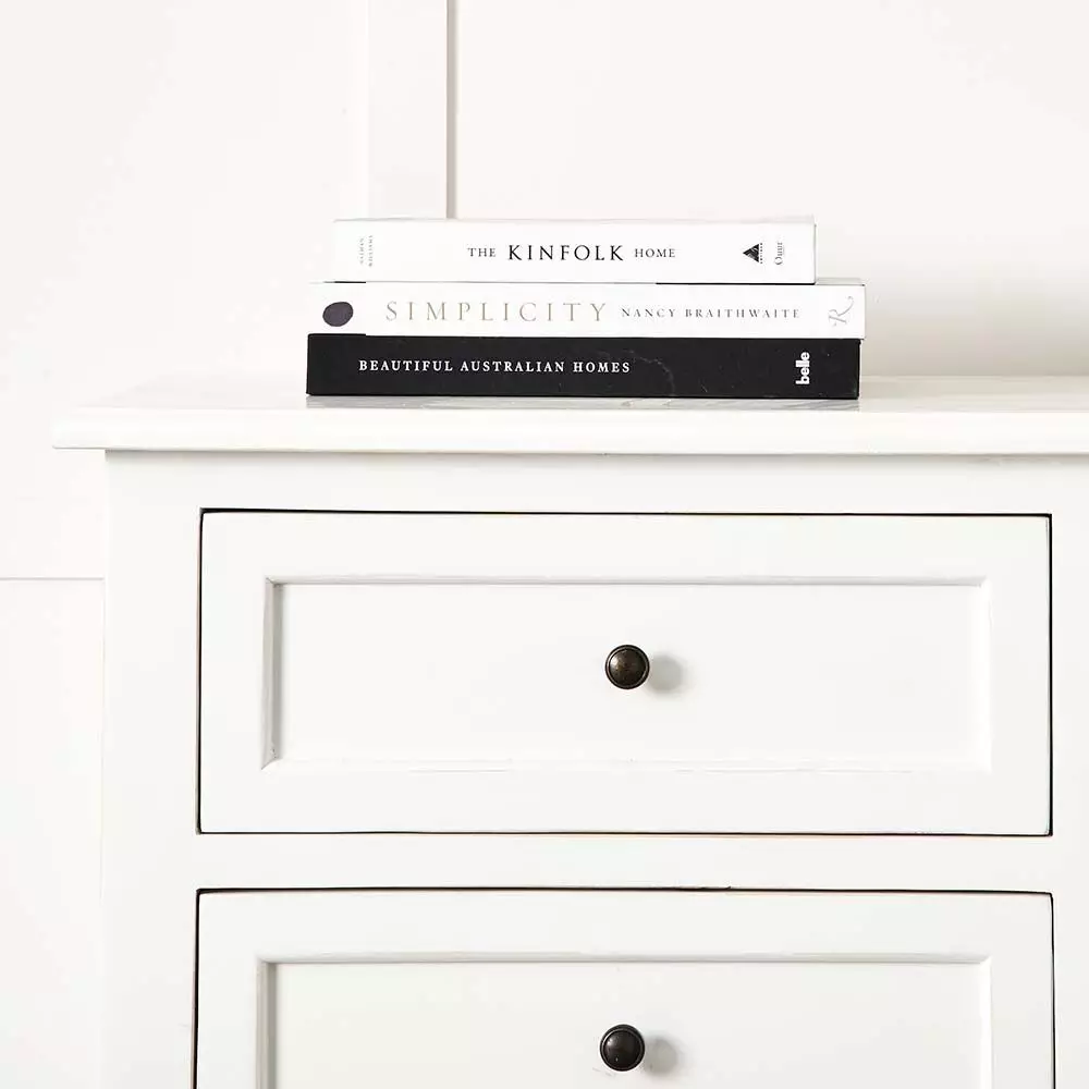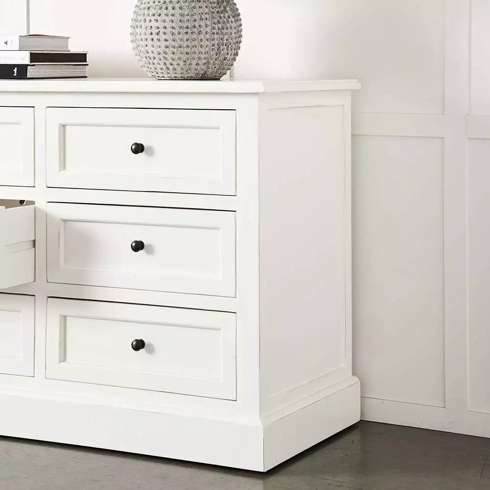 The Logan is an elegant chest of drawers constructed from polar. The neat zinc alloy drawer pulls are offset against the crisp white water-based paint. Six handy drawers make this piece of furniture the perfect choice in the bedroom, dining room or living room. An extremely versatile piece of furniture that can adapt to various uses.