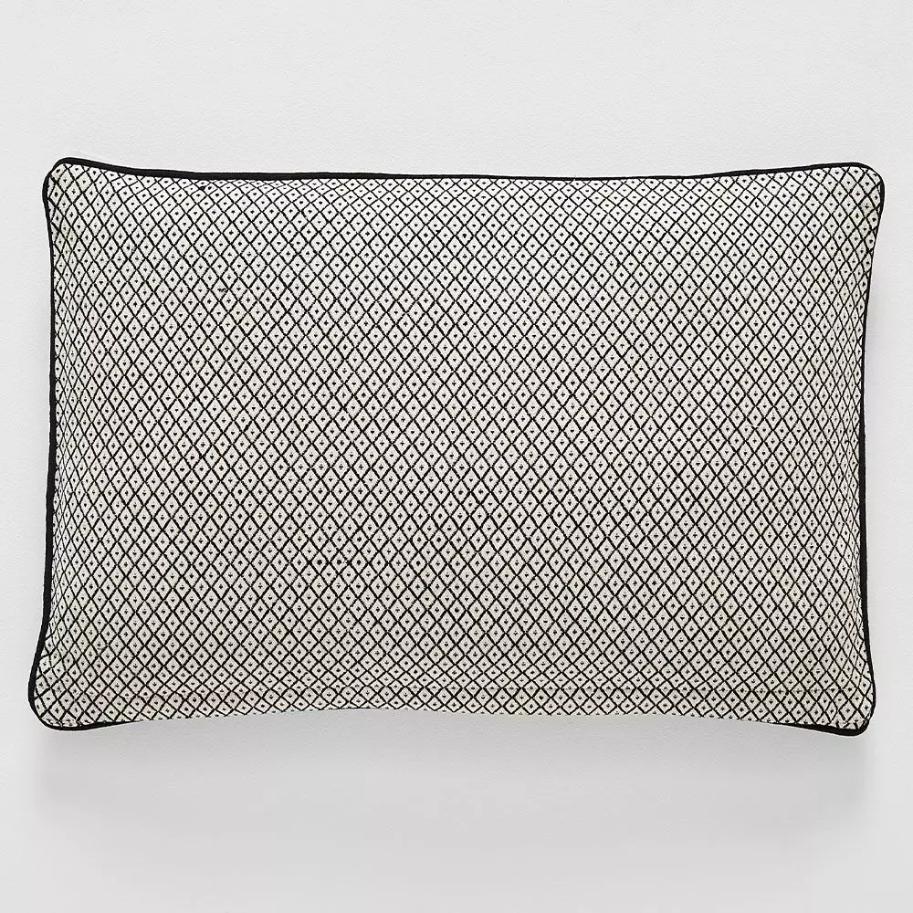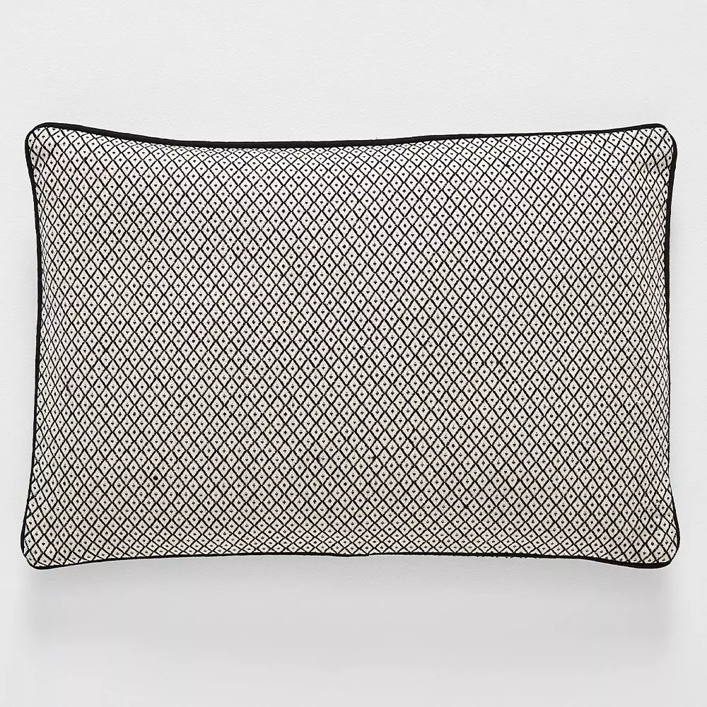 Woven cotton jacquard in black and white makes a dramatic cushion. Filled with a luxurious feather insert.