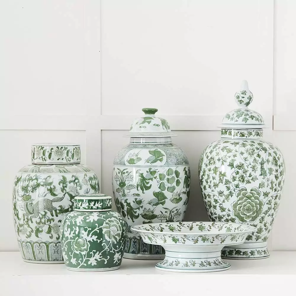 Ginger jars are steeped in centuries of Chinese culture and history, they come in various styles and sizes and many different colours. These gorgeous green and white jars will look wonderful as a pair or a group.