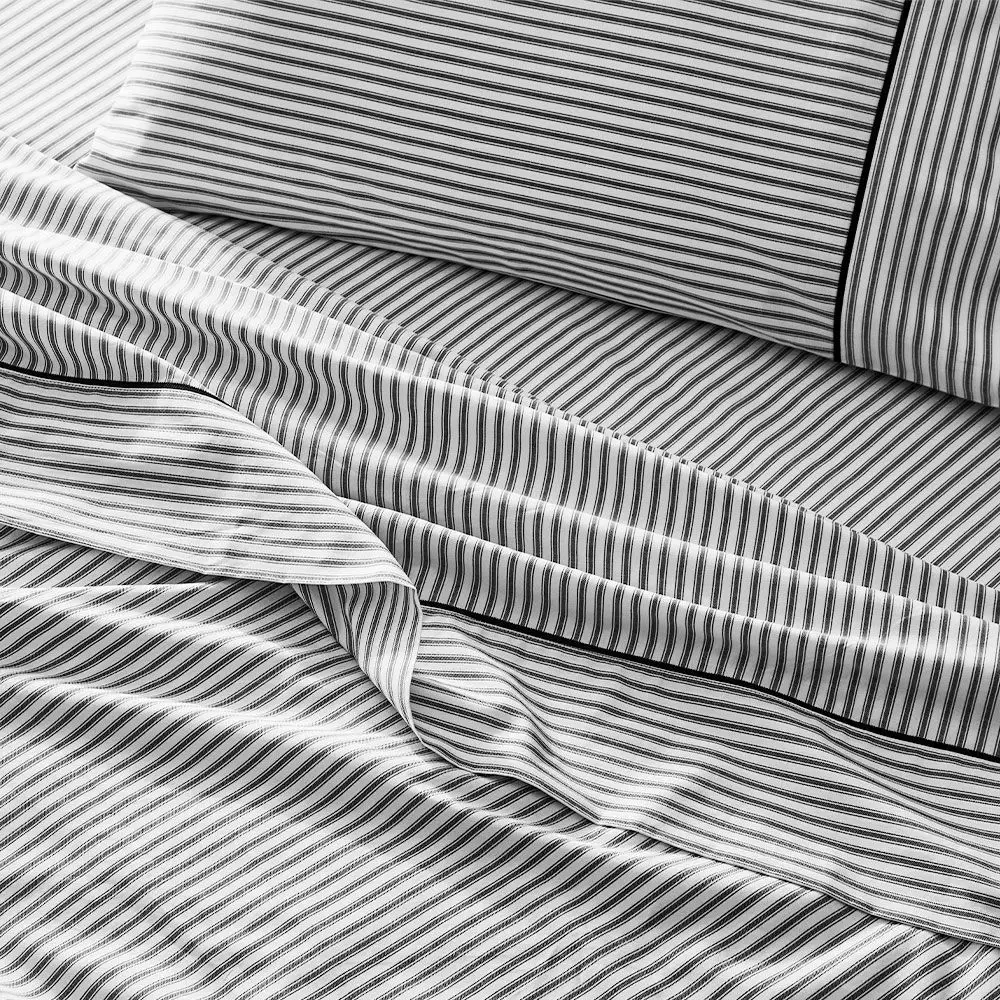 Our Parish bedlinen is woven with a sophisticated stripe and a subtle herringbone background in a soft cotton percale. The timeless black and white stripe takes inspiration from mattress ticking, so from humble beginnings, ticking has been reinvented again with our gorgeous Parish bedlinen.