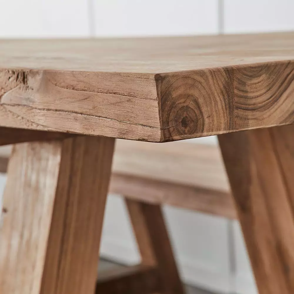 The elegant Porto Table is crafted from reclaimed teak with trestle style legs and a stretcher base. There is an umbrella hole in the centre of the table, perfect for holding our fabulous Paradiso umbrella and to keep it secure, there is also a hole in the stretcher base.