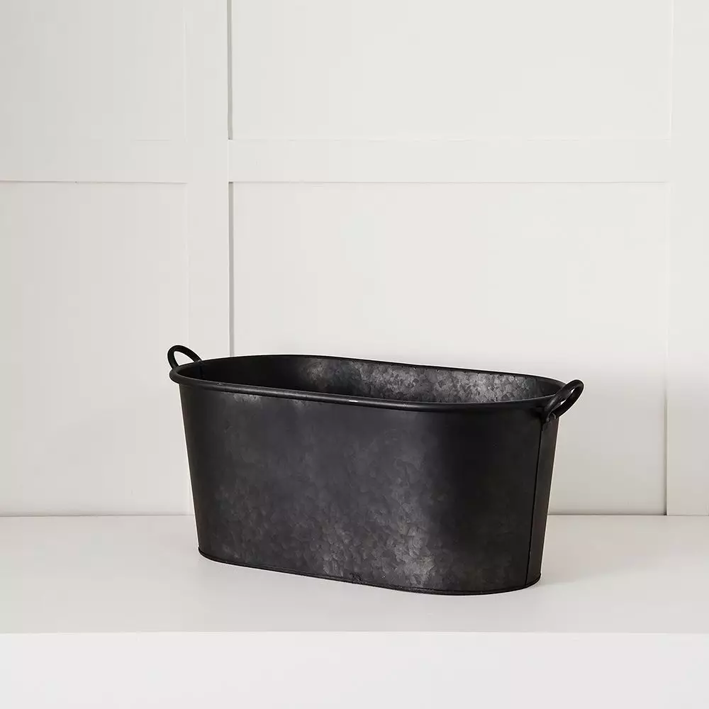 A beautiful tin tub perfect for herbs, annuals or small shrubs. Use as a planter to frame an outdoor area. The striking black colour will complement all foliage and flowers.
