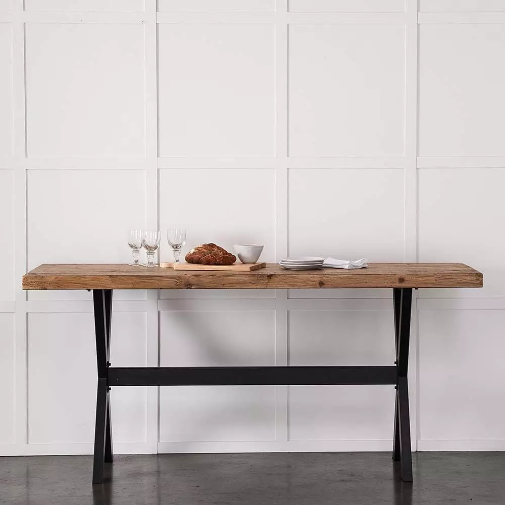 Made from reclaimed pine and brushed steel, our Santorini bar table will be the favourite place to gather with friends and family. The reclaimed pine has a rustic appearance but is still smooth to the touch.