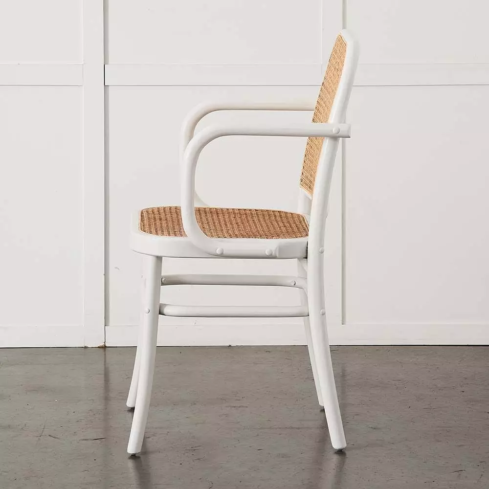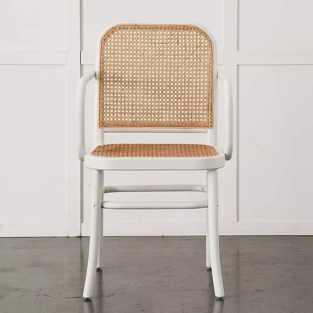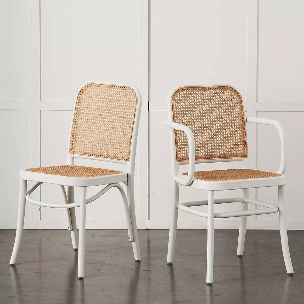 Modelled on the Thonet 811 chair by Hoffmann, the Saxon Carver has beautifully curved arms and the same woven cane seat and back as the chair. It is comfortable and light and it transitions seamlessly from casual to fine dining and will suit any style table and décor. Our dining chairs have been tested for durability in a domestic environment for adults up to 120kgs.