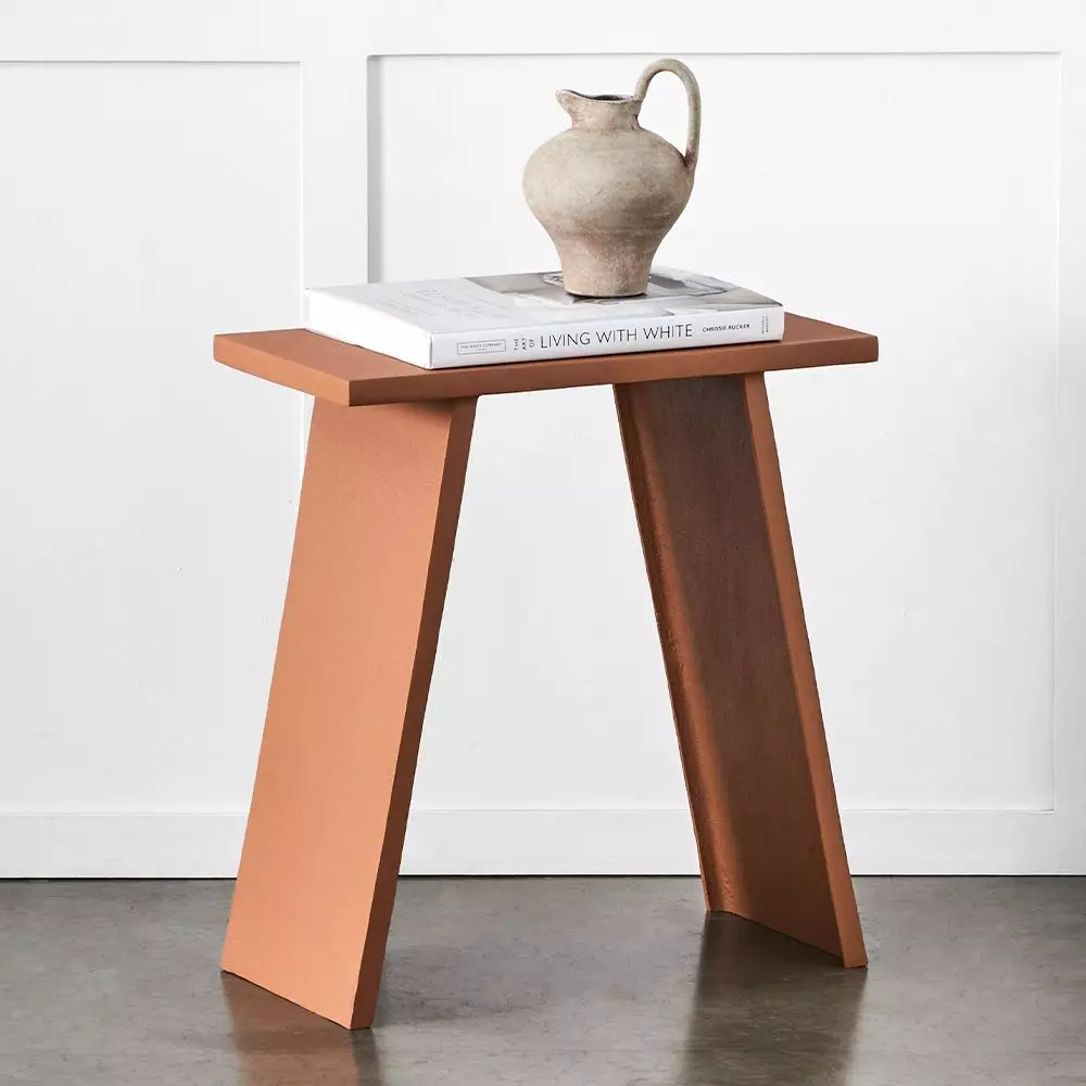 The angular Surrey side table is beautifully designed and expertly crafted from aluminium and then powder coated in a caramel shade offering a combination of elegance and durability. The warm hue complements many interior design styles, adding a touch of sophistication to your living space. Placed next to a sofa or armchair, it’s a perfect surface for holding drinks, books, or decorative items.