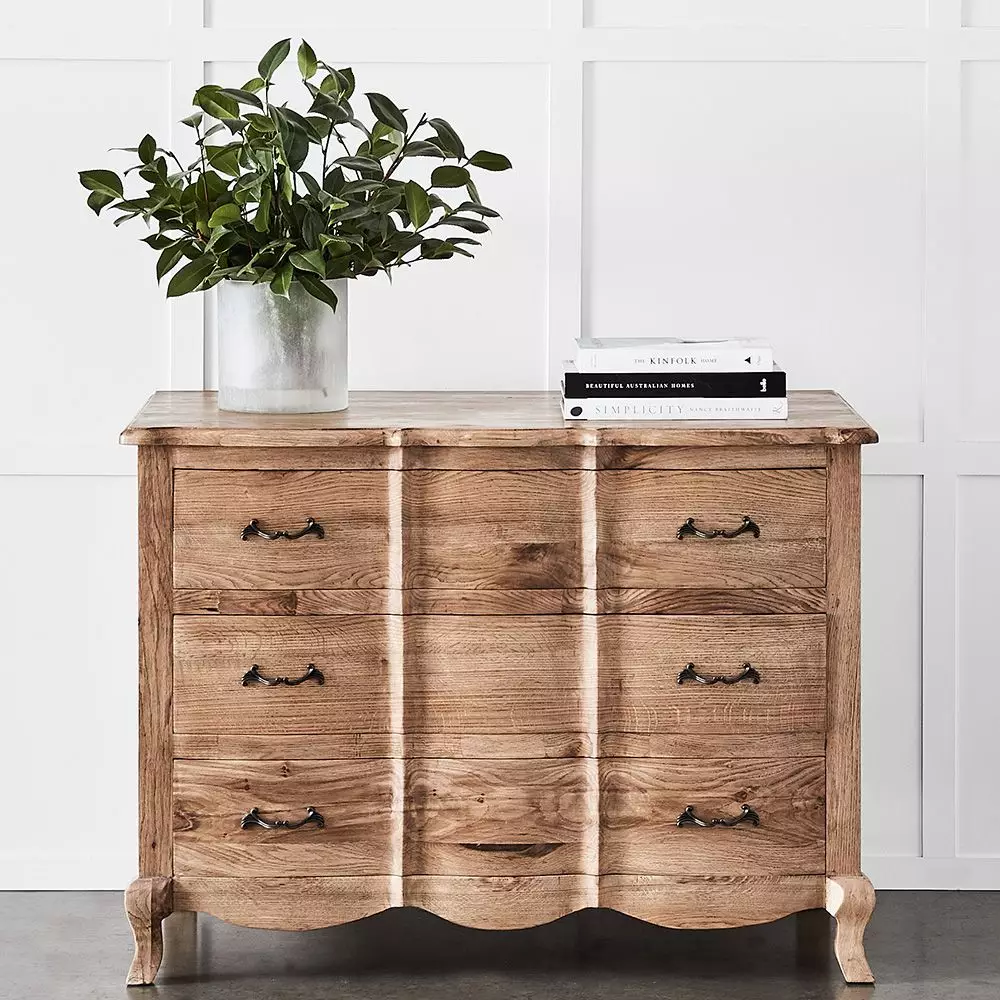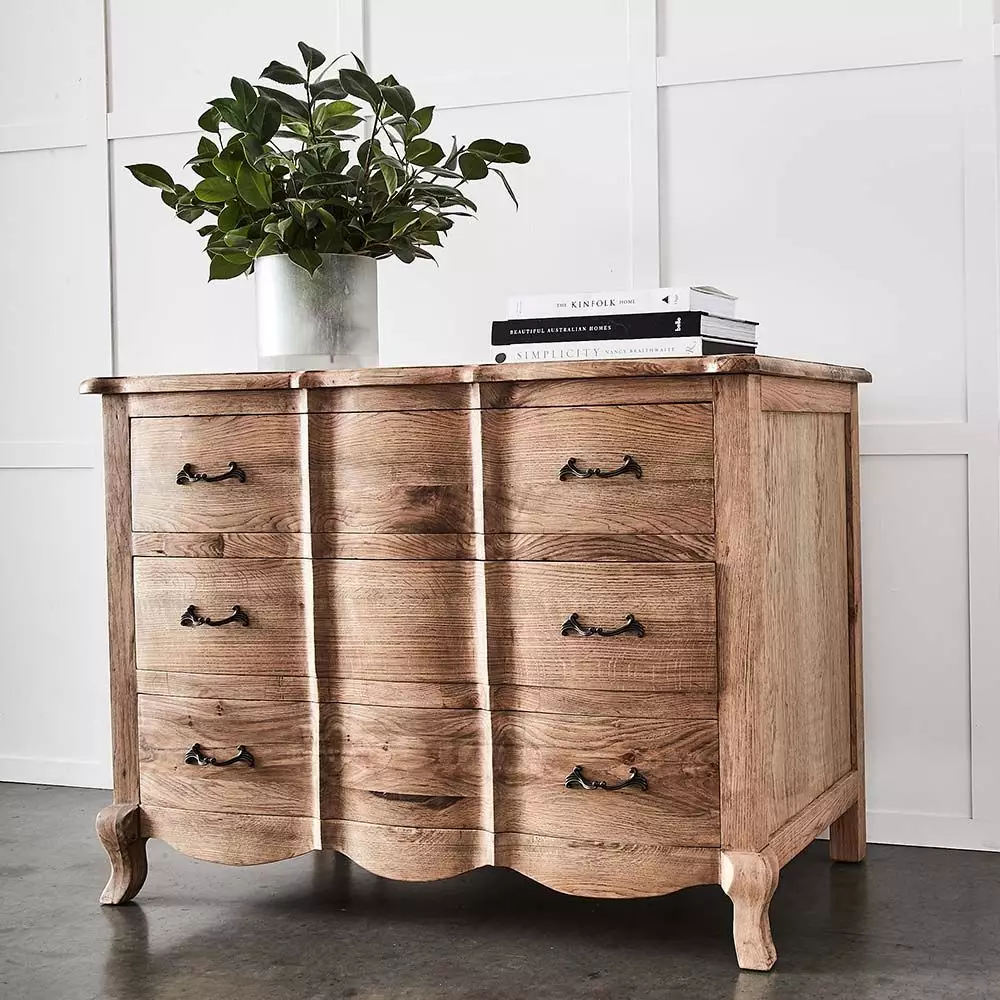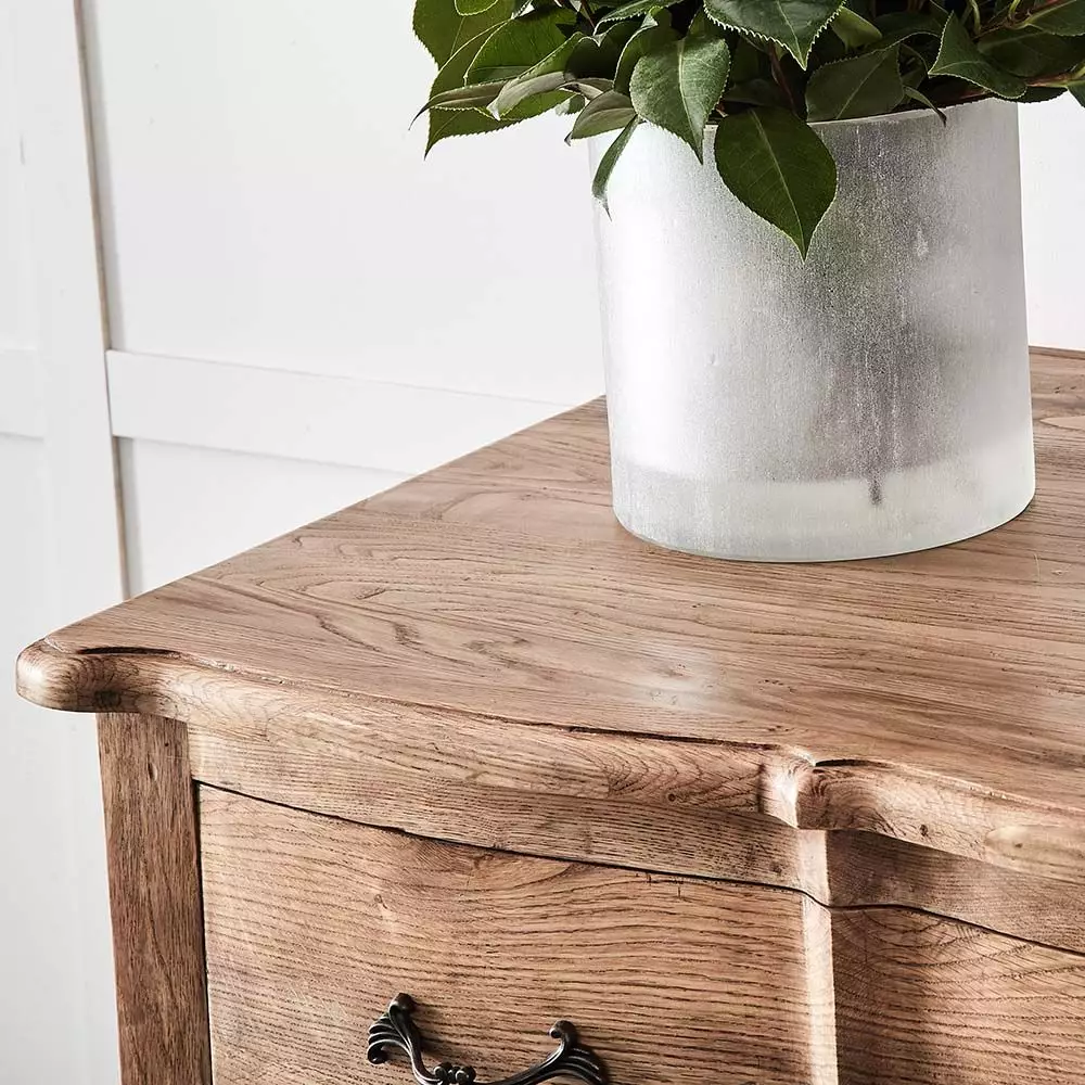 The Tuscan chest of drawers is a classic piece of furniture beautifully crafted, with the lovely grain of the oak adding to the appeal. The curved detailing on front and three roomy drawers, with pretty metal drawer pulls and the curved feet all give the piece an antique look.